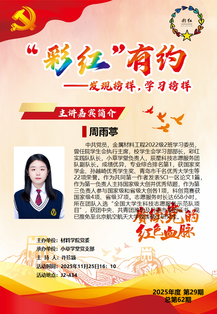 上一条:材料学院“彩红”有约活动第六十三期 下一条:材料学院“彩红”有约活动第六十一期