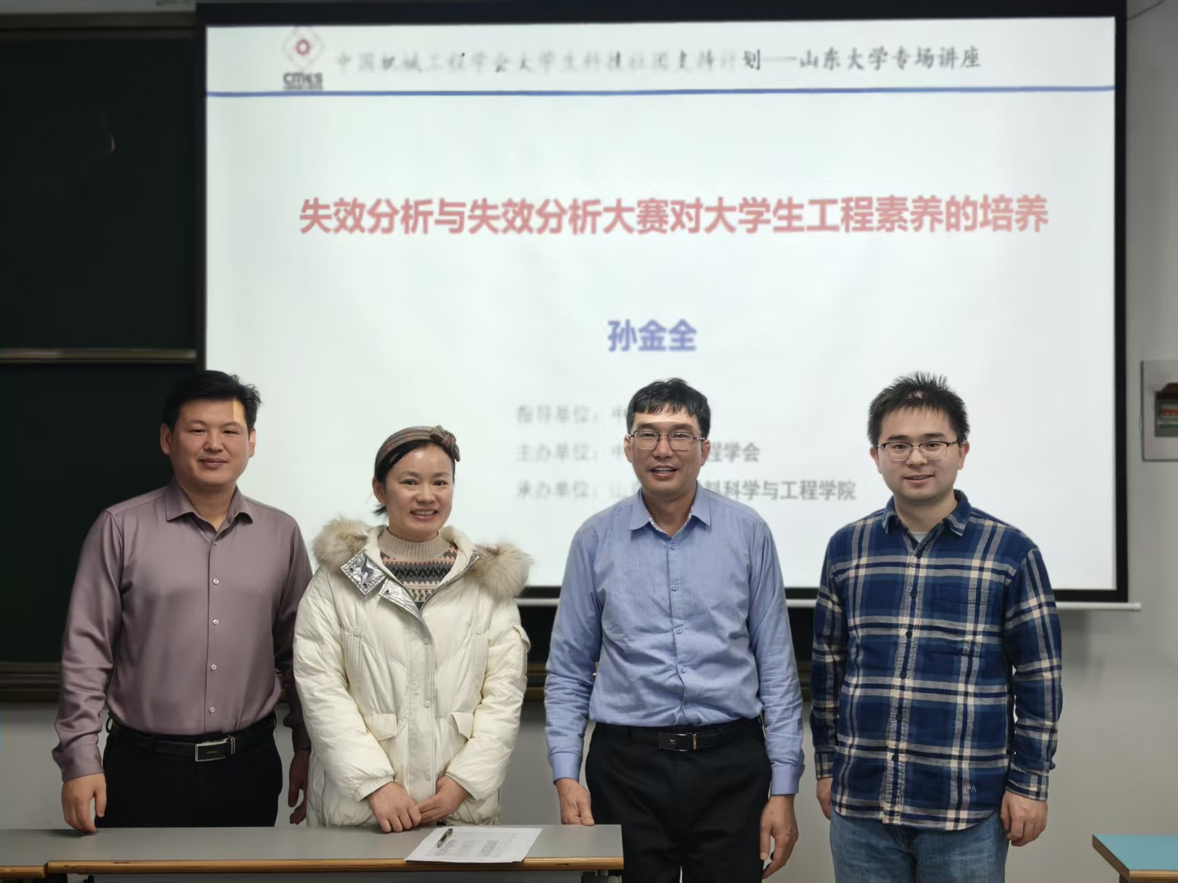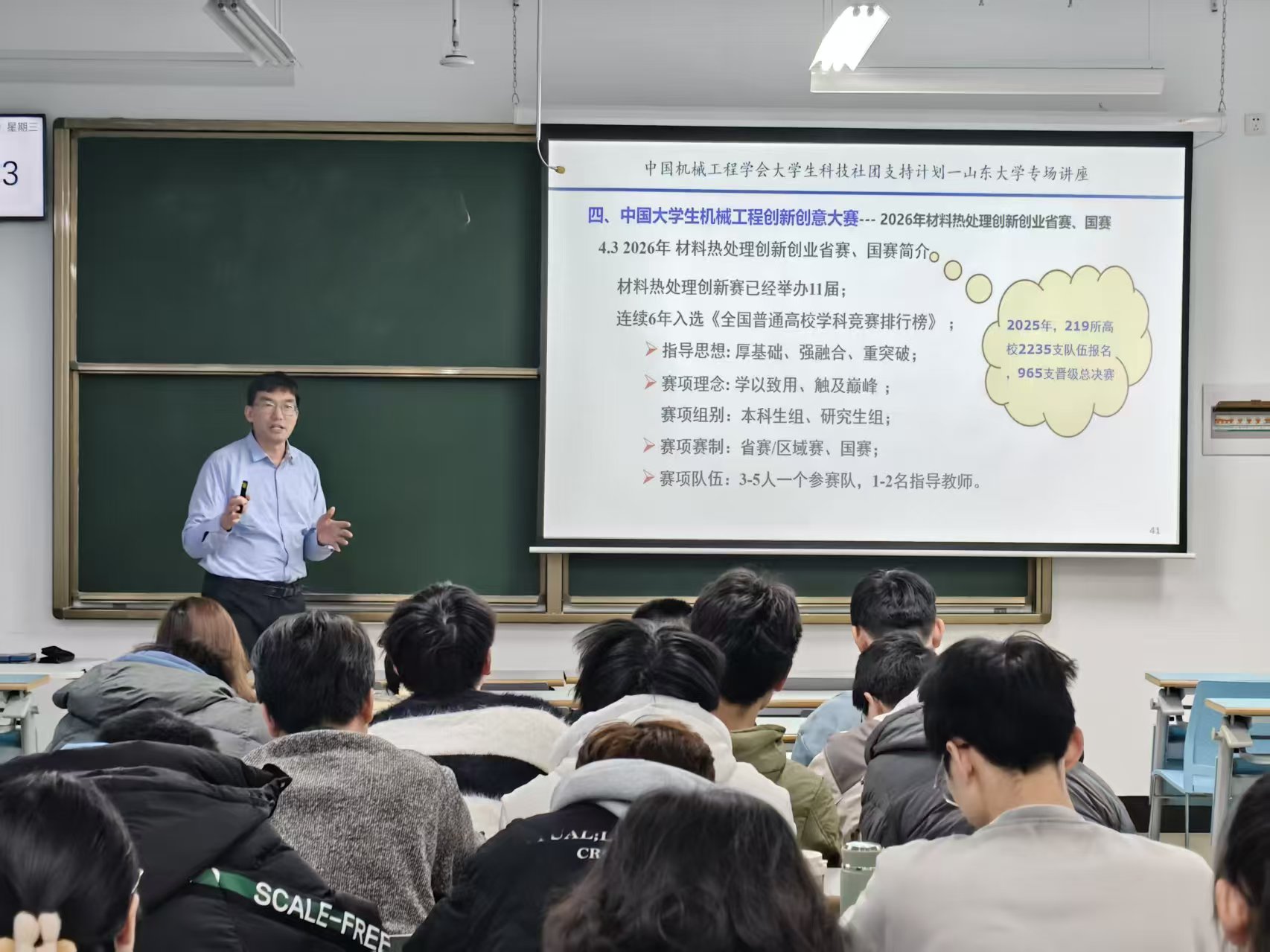 2025年11月19日,中国机械工程学会大学生科技社团支持计划——山东大学专场讲座由中国机械工程学会主办,山东大学材料科学与工程学院承办。本次活动旨在通过大赛平台推进大学生工程教育与工业界的联系,提升大学生专业素养,增强工程教育人才培养对产业发展的适应性。活动由山东大学材料科学与工程学院的谷国超老师主持。我院孙金全教授受邀担任主讲。